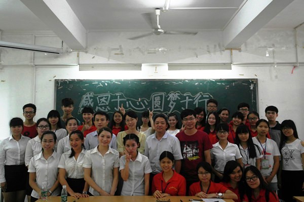 5月23日下午3点,燕雷楼C栋411教室座无虚席。由教科院感恩圆梦义工服务分队举办面向贫困生的“感恩于心,圆梦于行”主题演讲比赛隆重举行。出席本次比赛的评委有教科院党委李德深副书记、韩芳芳老师、辅导员苏贵老师、辅导员刘曾亮老师、校义工服务总队干部代表以及二级学院义工服务队干部代表。