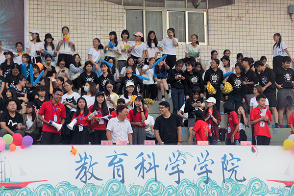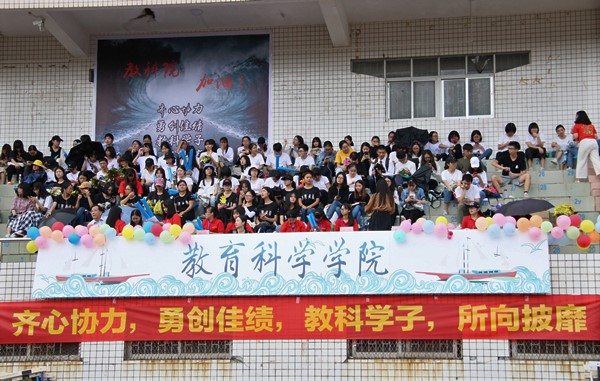 “齐心协力,勇创佳绩。教科学子,所向披靡”的口号声久久地回荡在田径场,教科学子们的呐喊声贯穿了整场校运会。