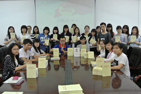 学院团委在会上为各支部发放了《习近平总书记系列重要讲话读本》,做到每个宿舍都有《读本》可学,帮助同学们更好地理解和贯彻习近平总书记系列重要讲话精神,引导学生在学习与思辨中加深对党的理论的认识并牢固树立起走中国特色社会主义道路实现“中国梦”的信念。