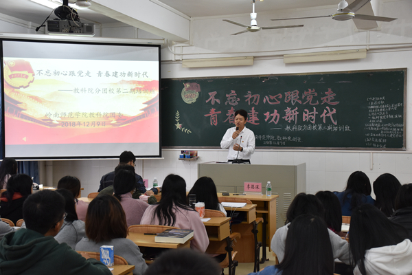 为提升教科院团学干部的综合素质,使其真正成为党的忠实助手和可靠后备军,12月9日,教科院团委于教四C栋412室举办了以“不忘初心跟党走,青春建功新时代”为主题的第二期培训班。出席本次培训班的有教科院党委副书记李德深、教科院八大学生机构主要干部以及18级各班班长、团支书。本次培训由教科院团委负责人关刘君老师主持。