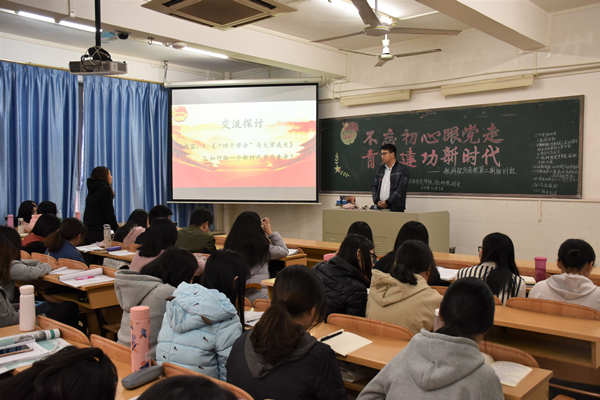 李德深为全体学员带来题为《“四个学会”与大学成长》主题讲座。关刘君以《重温共青团历史——放飞青春梦想》为题带领全体学员回顾了共青团的光辉历史。全体学员观看历史教育影片《建党伟业》后进行交流探讨,纷纷诉说自己的观影后感受,表示会紧跟党的步伐,不忘初心。