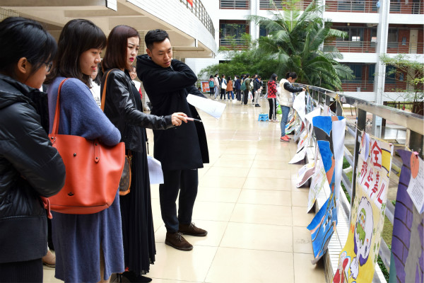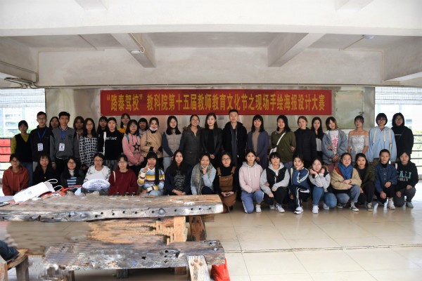 为展现大学生风采,提高师范生技能,12月16日,教科院“路泰驾校”第十五届教师教育文化节之现场手绘海报大赛决赛在第四教学楼二楼平台举办。美术与设计学院美术系副主任门龙朋、教科院学前教育系讲师袁铱琳担任本次比赛评委,教科院辅导员黄蔚老师、宣传中心干部及参赛选手参加了此次活动。