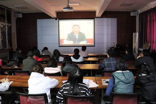 12月18日上午,教科院领导、专业教师、全体辅导员、各大学生机构主要干部、各班班干于第四教学楼408会议室、313教室收看庆祝改革开放40周年大会。