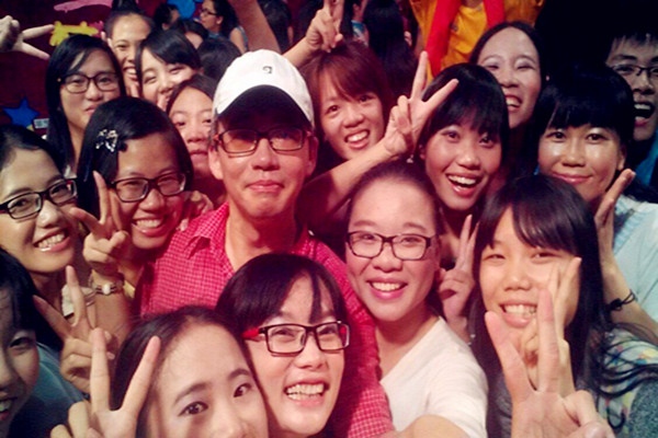 大一时,15特教1班的同学们排了个话剧参加新生才艺大赛,几乎天天都要排练。吴老师如果只要没课就都会静静地坐在一旁看同学们排练,一直陪伴到同学们排练结束。在初赛和决赛拥挤的人群中,也总会闪现一顶长情相伴的小红帽。