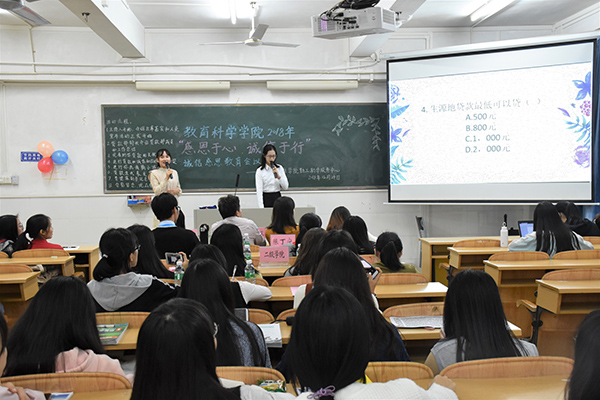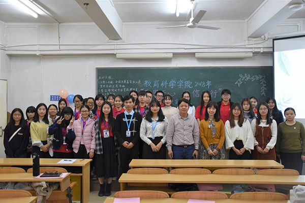 12月24日,教科院勤工助学服务中心于教四501室举办教科院2018年“感恩于心,诚信于行”诚信感恩教育会议。教科院党委副书记李德深、辅导员黄蔚、教科院勤工中心正职负责人梁淑雯、校自强社干部林文莉、黄国雄、各二级学院勤工中心干部以及教科院各班贫困生负责人、全体贷款生等共同出席了本次活动。