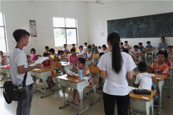 7月12日早上,岭南师范学院教育科学学院“萤火虫”实践队在吴川市显发学校开展第三天的趣味教学活动。各年级班主任和“萤火虫”实践队的其他队员参与本次教学活动。