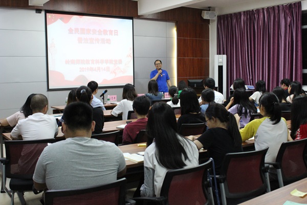 4月14日晚,教科院于教四408室举办全民国家安全教育日普法宣传活动。本次会议由教科院党委副书记林志军主持。教科院辅导员黄蔚、关刘君、谭诗蔚、各班班长、团支书以及各大机构干部出席了本次会议。