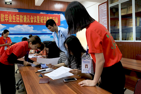 干部指导贷款学生填写资料 (吕晓莹摄)
