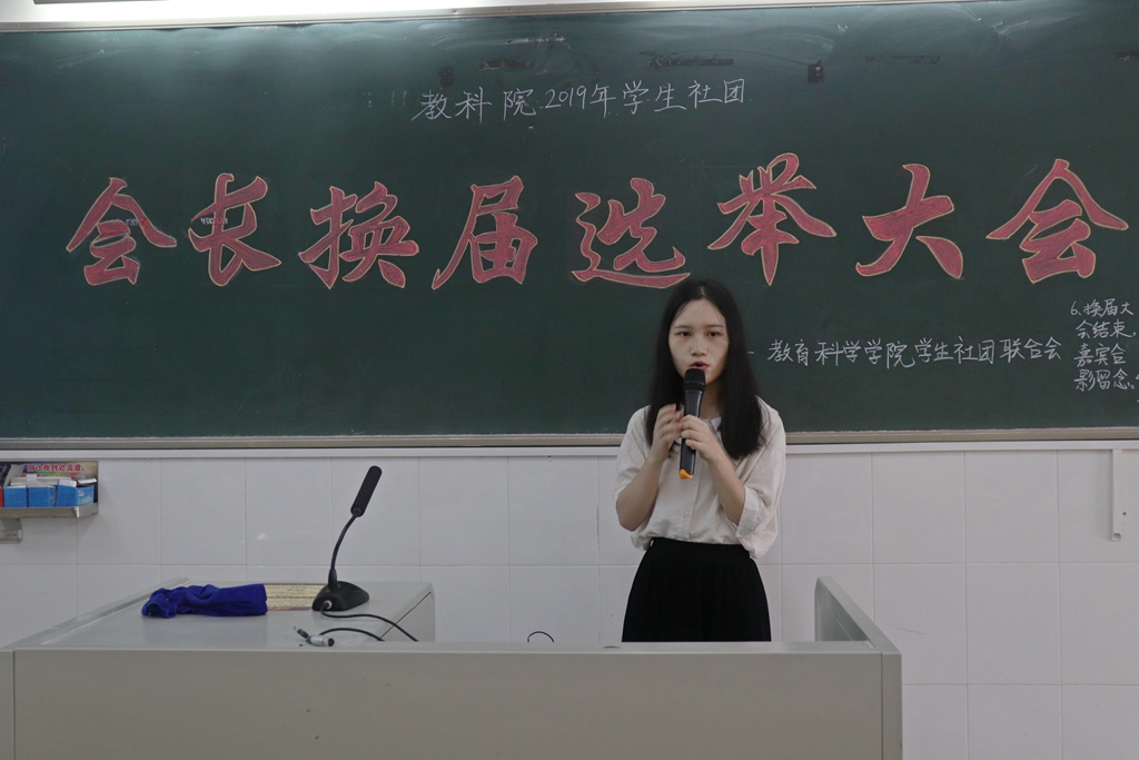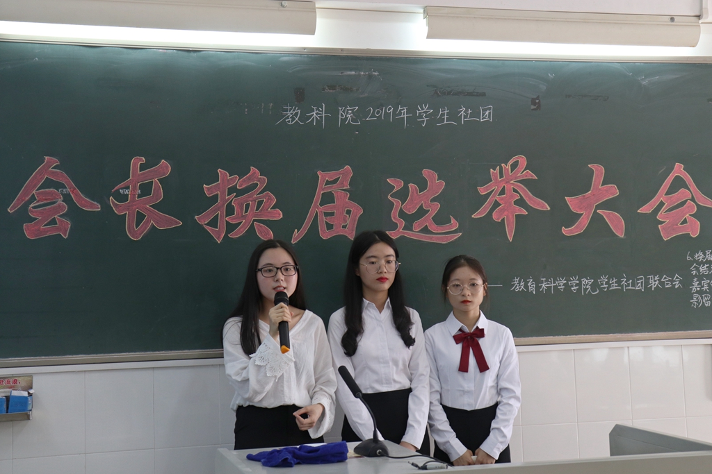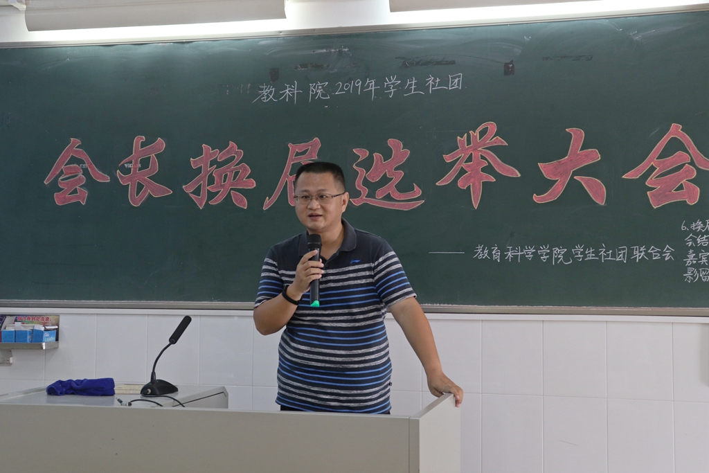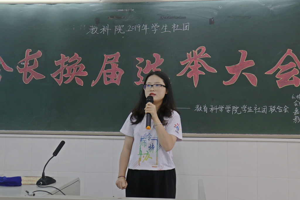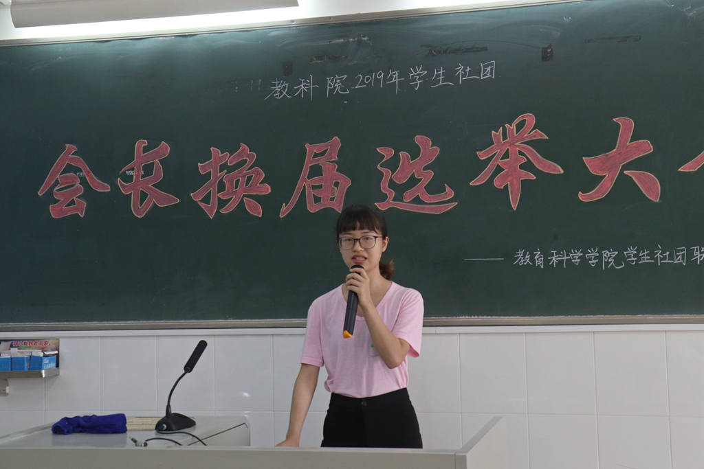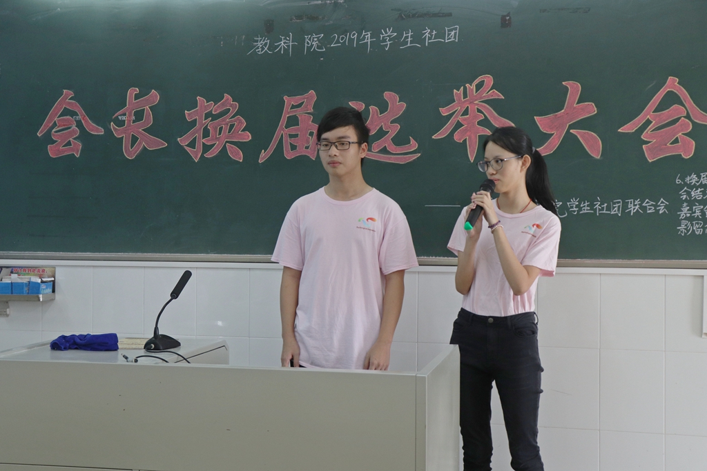6月16日早上,教科院学生会社团部于教四706举办2019年学生社团会长换届选举大会。儿童围棋教育协会指导老师钱林晓、特殊教育协会指导老师石梦良、手工制作协会指导老师卢祖琴、社团分管老师黄蔚以及校社联干部出席了本次换届选举大会。