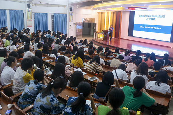 9月18日晚,教育科学学院开展了2019级新生入党教育、安全教育及校纪校规教育讲座。讲座特邀教科院党委副书记林志军、保卫处杨继焱科长作为主讲嘉宾。