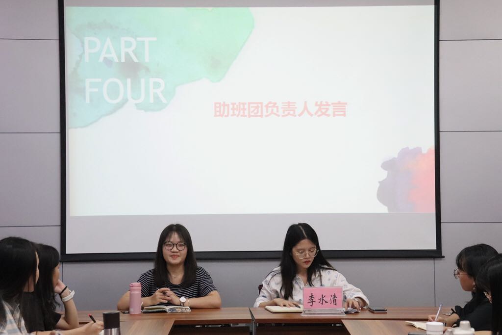 李水清首先对助班9月份的工作进行总结与肯定,同时也指出目前助班工作存在的问题。她对助班后期的工作提出了以下几点要求:一是端正自身的思想认识,不忘初心,践行自己职责,对照自己工作标准和做得好的班级找差距、找不足;二是工作重心的改变,学会放手,着重指导,做好班委培训和对接工作;三是结合班级特点,明确各班学风、班风的建设;四是抓落实,对自己的班级建设方案、对存在的问题进行追踪,并根据落实情况进行反思,做到进一步的完善与落实。