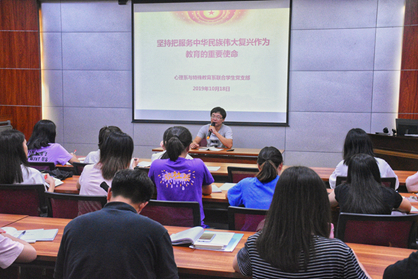 按照“不忘初心、牢记使命”主题教育的总体要求,10月18日晚,教科院在第四教学楼408会议室召开主题为“坚持把服务中华民族伟大复兴作为教育的重要使命”的专题党课。教科院辅导员苏贵老师、教科院学生党员参加此次党课。