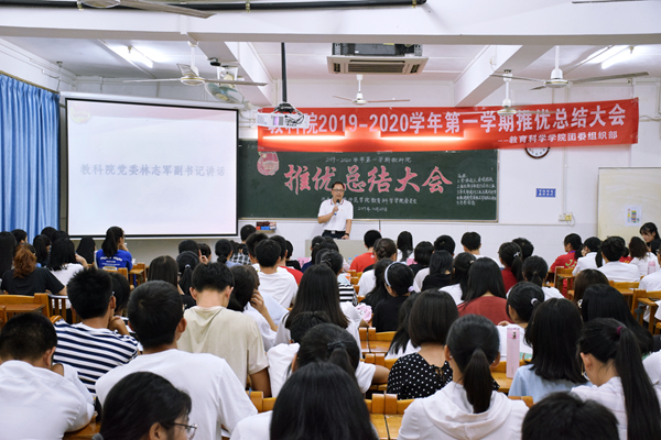 为推荐优秀团员积极向党组织靠拢,深入做好团员推优工作,10月20日晚,教科院于第四教学楼606室举行2019-2020学年第一学期推优总结大会。教科院党委副书记林志军、团委负责人关刘君、校团委组织部干部、教科院团委秘书团、党建干部及各支部团支书、推优代表共同出席本次会议。