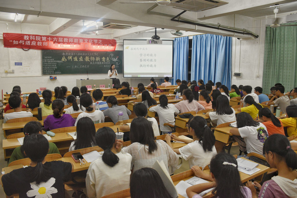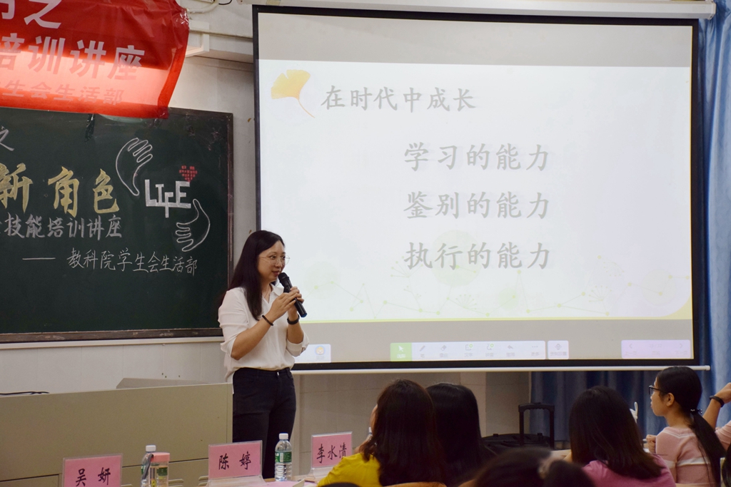 10月25日晚,教科院学生会生活部于教四C栋501室举行了第十六届教师教育文化节之“如何适应教师新角色”班主任技能培训讲座。此次讲座由湛江市第十六小学一级教师吴妍主讲,教科院辅导员李水清、湛江市第十六小学教导主任陈婷共同出席了此次讲座。