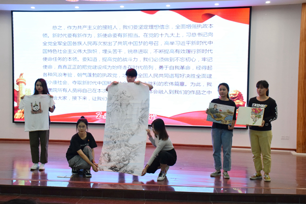 教育科学学院、外国语学院、法政学院、化学化工学院与美术与设计学院的学员代表分别上台作学习内容、小组讨论成果、培训感悟和实际行动等方面汇报,展示在培训中的收获与感想。来自教科院学员们倾情演唱歌曲《我和我的祖国》,慷慨激昂的歌声激奋人心,抒发了对党和祖国的热爱;法政院的学员们带来朗诵《为你而歌,从心底唱起》等节目,饱含深情地话语中倾诉着的是朗诵者对祖国的浓浓感情;美设院的学员们将培训感悟融入作品,创作出一幅幅精美的画卷。
