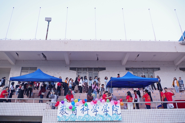 学生干部们为了本次的运动会付出了大量的时间和精力,除了前期繁琐的物资准备,现场的统筹工作也不容易。在他们的努力下,大本营装饰得别具一格:以蓝色大海为背景的“教育科学学院”纸板体现了教科学子的蓬勃朝气;各类运动项目的运动员姿态,展示了教科学子健康的体魄以及热爱运动、热爱生活的时代青年精神。有他们的努力,教科学子必定更有信心,所向披靡。