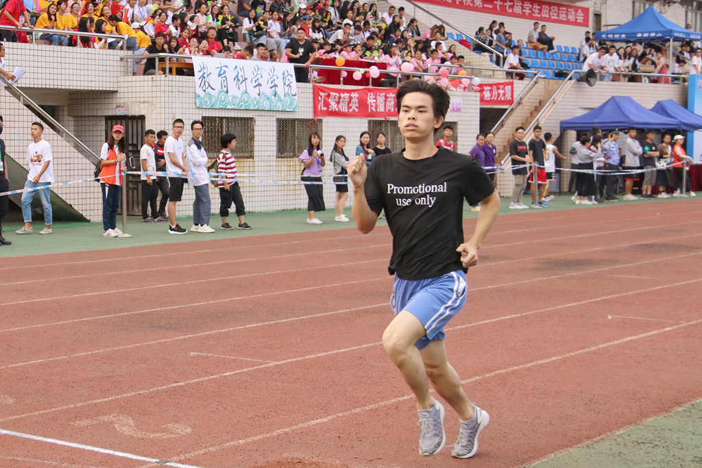 黄广诚热情地分享了自己的比赛经验:“认真对待训练,不欺骗自己,不厌倦,戒骄戒躁。”此外,他再次强调:“不要过多关注结果本身,乐在参与。”最后,黄广诚特别感谢身边每一位同学的支持,期待下一年有更多的教科学子在校运会上彰显青春魅力。