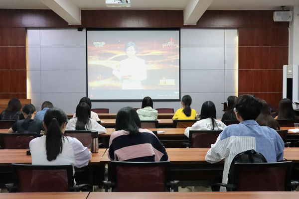 学生党员观看“时代楷模”卢永根先进事迹电视节目现场(黄宝贤摄)