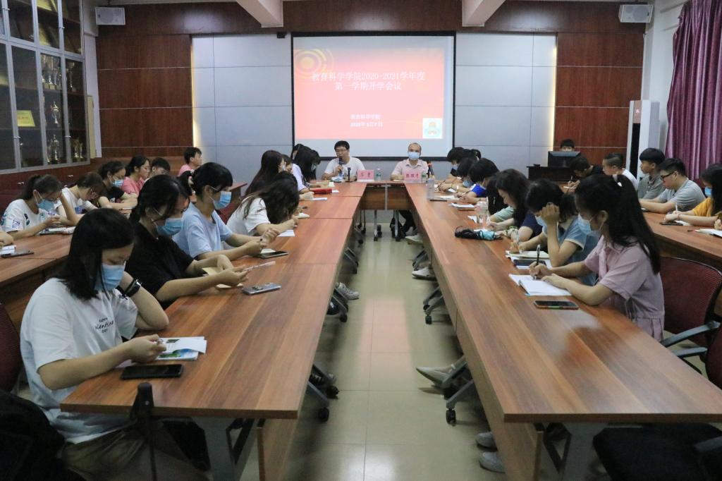 9月7日晚,教科院在408会议室召开2020-2021学年第一学期学生工作会议。教科院党委副书记陈理才、辅导员苏贵、李水清、朱丽儒以及各学生机构主要干部、各班长出席此次会议。