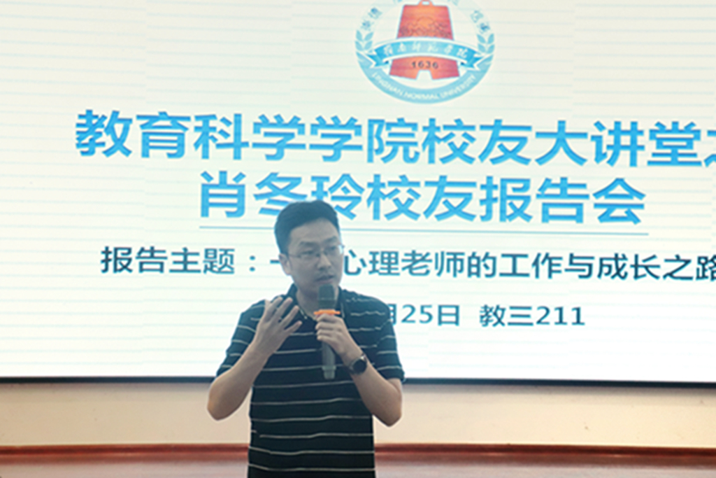 9月25日晚,教科院于第三教学楼211举办校友大讲堂,由2011届优秀校友肖冬玲作报告。学院党委副书记陈理才、副院长李继波、心理系雷学军副教授、何吴明博士、辅导员朱丽儒、心理系全体学生共同出席本次报告会。此次报告会由陈理才副书记主持。