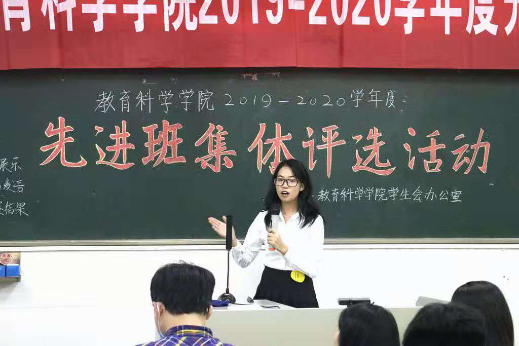 11月7日晚,教科院学生会办公室于第四教学楼605教室举行2019-2020学年度先进班集体评选活动。教科院辅导员苏贵老师、黄蔚老师、李水清老师、朱丽儒老师和本院八大学生机构代表及外院嘉宾一同出席了本次活动。