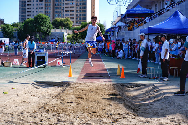 运动员胡光鑫参加跳远比赛(陈浠摄)