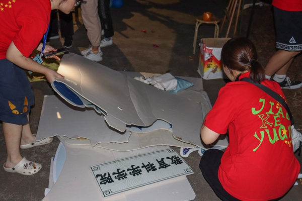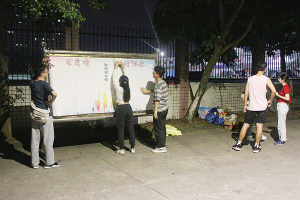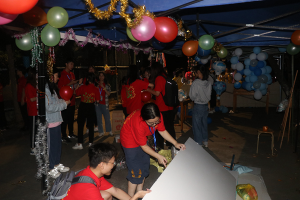 清晨天还没亮,他们已带着各种道具到达现场,只为将教科院的大本营装饰得更温馨、夺目。微凉的秋风给被汗水沾湿衣服的他们送去了清凉。他们忙碌的身影,是清晨最靓丽的一道风景线。