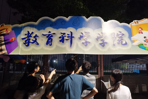 在他们的努力下,大本营装饰得别有一番风味:以蓝色海浪为背景的“教育科学学院”纸板充分体现了教科学子的意气风发,激情而沉稳;书本展现了教科学子教书育人的情怀,端庄而大气;运动健儿们运动的姿态则展示了教科学子热爱运动、热爱生活的精神,青春而洋溢。
