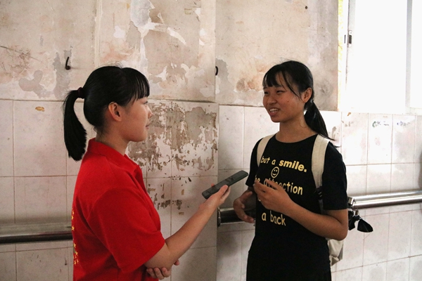 对鄢麟进行采访(周翠莹摄)