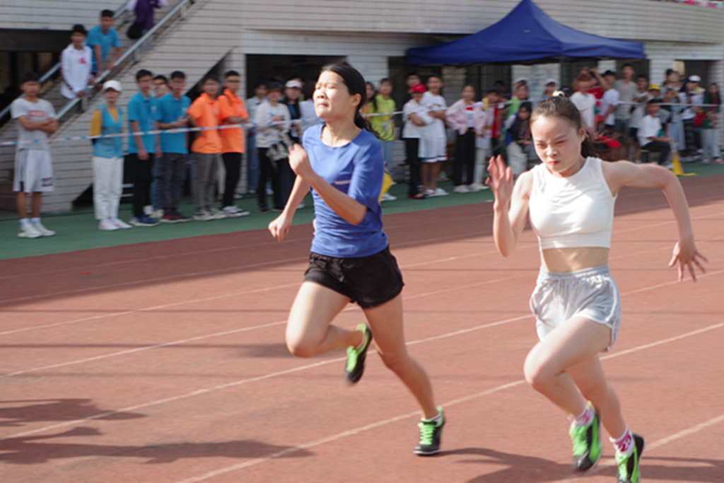 伴随着一声发令枪响,黄婉玲像离弦的箭一样,在红色的跑道上飞驰,在一片加油声中跨过终点线,取得了第四名的优异成绩,为教科院争得了荣誉。