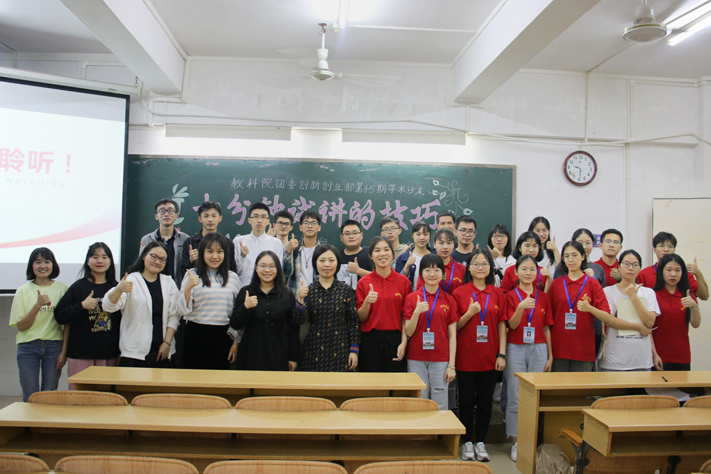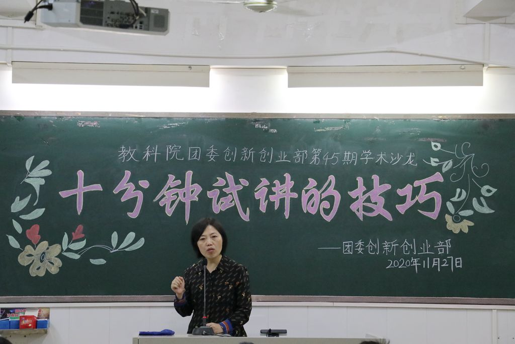 试讲作为考察教师综合能力的一种形式,对于我们每个师范生而言是必不可少的一个技能。11月27日晚,教科院于教四412室开展主题为“十分钟试讲的技巧”的第45期学术沙龙活动。本次活动由梁碧湘老师主讲。