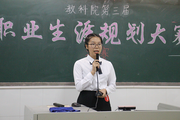 进入决赛的十位选手精神饱满、端庄大方,在规定的时间内完成了现场PPT和纸质手绘生命线图展示。其中18心本2班的周雨涵同学通过专业的测评完成了对自我和职业的认知,明确了想成为深圳市中学心理老师的目标。同时她也提到了未来职业生涯中可能出现的问题并给出了解决对策。18特教1班的杨粤栋同学介绍了特殊教育发展的环境和压力并以此引出“我能为特殊教育做些什么”的个人行动计划主题。他表示特教老师需要用法治、创新意识和技术赋能让自己成为“无法被替代的资源库”,并以“为天地立心,为生民立命”来勉励自己。