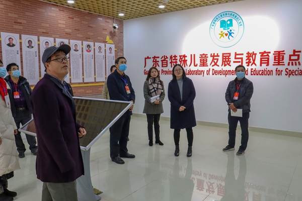 范兆雄简要向代表团介绍了特殊教育专业基本情况,他表示,岭南师范学院特殊教育专业为广东省特色专业,在人才培养方面富有特色,近年特殊教育专业发展迅速,科研力量雄厚。实验员伍美群给代表团介绍了知动训练室和综合实验室,实验室内设备齐全先进,让代表们了解特殊儿童的训练治疗方法。代表团还参观了学院生理心理学实验室、言语障碍康复实验室,负责人张长征教授向代表团介绍了相关实验的意义与应用。最后,代表团参观了广东省特殊教育发展与教育重点实验室,了解学校以特殊教育专业为依托,牵头成立了广东省特殊教育教师发展联盟,对教科院特殊教育专业建设表示肯定。