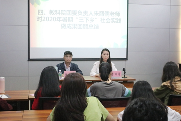 朱丽儒对2020年暑期“三下乡”社会实践活动做成果回顾总结。她强调“三下乡”活动的重要性,对教科院在这次活动中取得的荣誉和成果给予高度肯定。此外,朱丽儒对同学们提出希望,以此次活动为契机,展现能力,积极创新,将教科院特色与实践活动结合起来,汲取经验,以积极的探索精神、学习精神铸就教科院实践新辉煌。