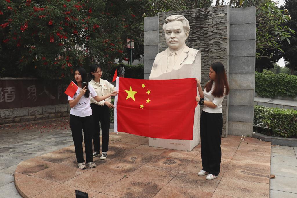 介绍国旗(张林珏摄)