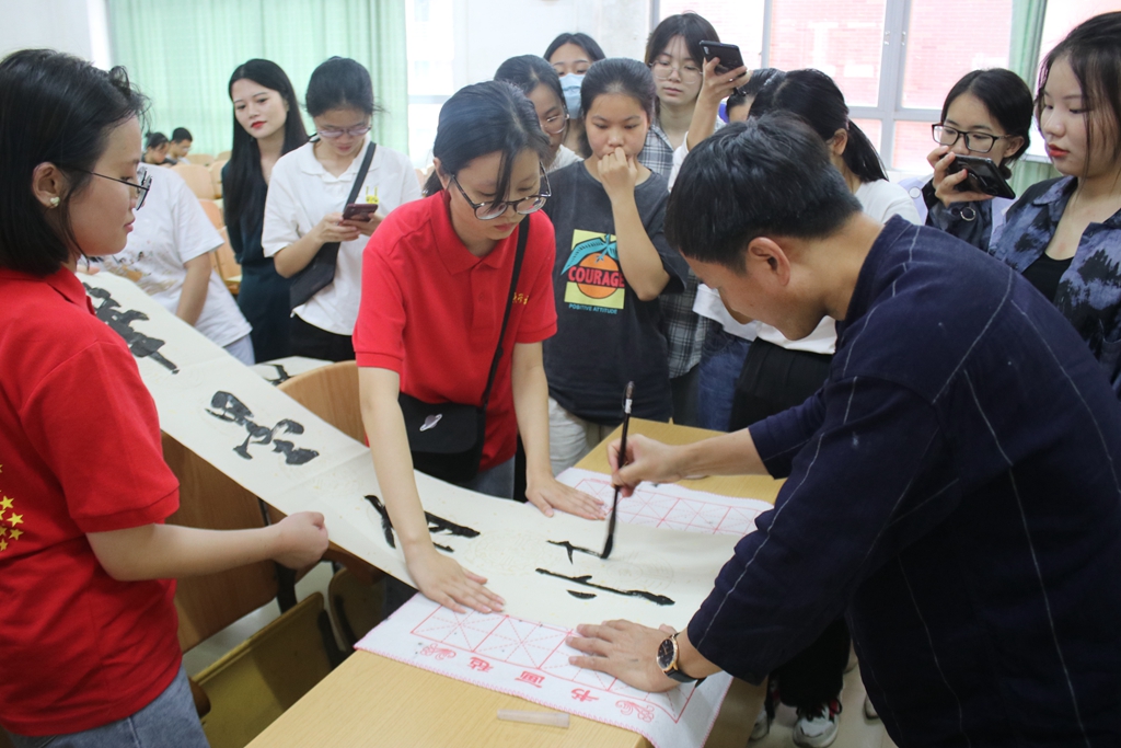 评委老师作毛笔字示范(成嘉仪摄)
