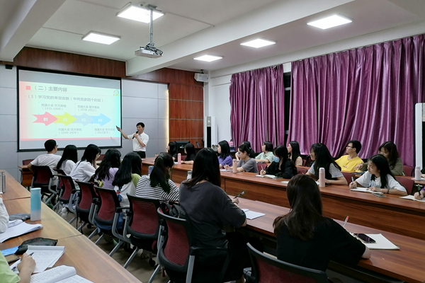 课堂伊始,梁晋从党史学习的重要意义、主要内容和基本遵循三个方面引导同学们深入了解党的历史发展过程。梁晋指出,在全党开展党史学习教育,是牢记初心使命、推进中华民族伟大复兴历史伟业的必然要求;是坚定信仰信念、在新时代发展中国特色社会主义的必然要求;是推进党的自我革命、永葆党的生机活力的必然要求。因此,我们必须把党的历史学习好、总结好,把党的成功经验传承好、发扬好。