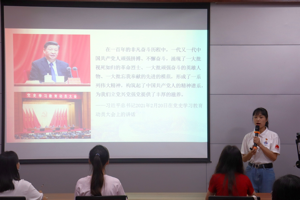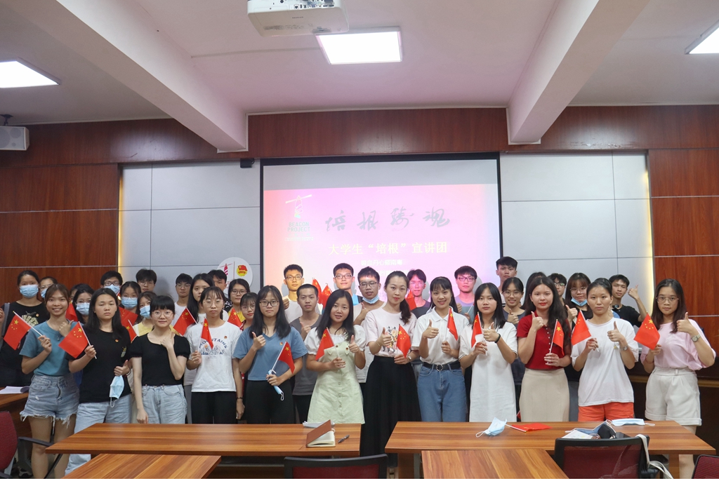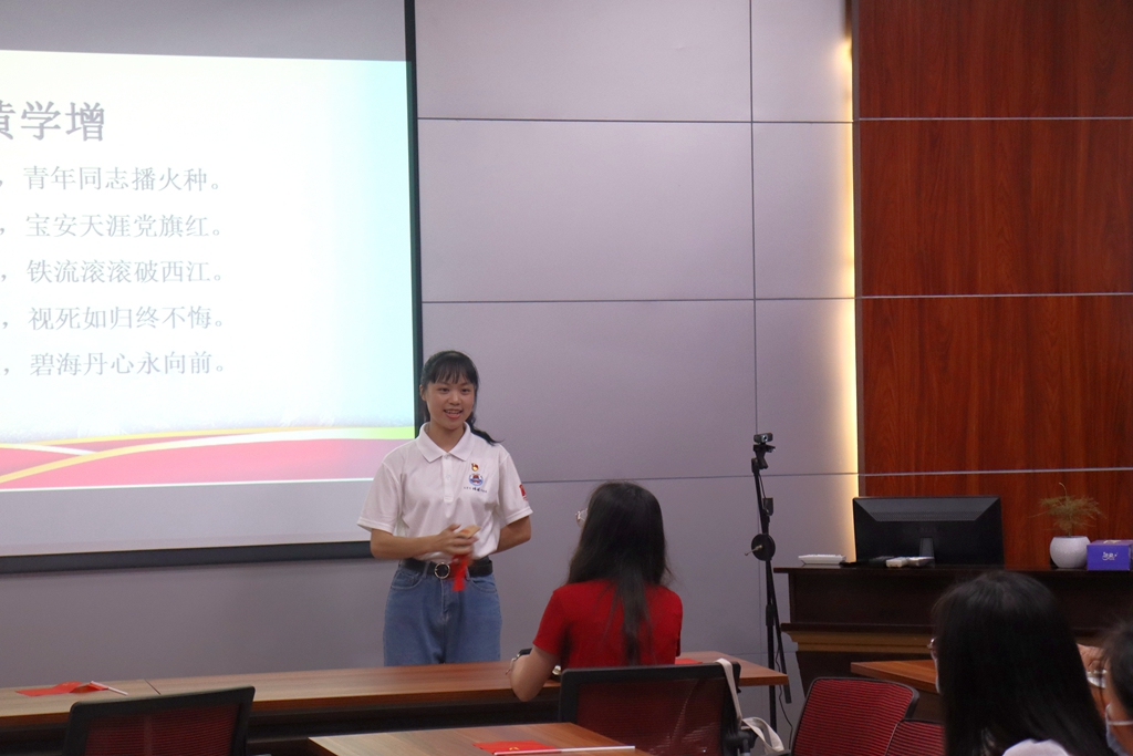 为教育带动青年学生了解党的光辉历史,感悟党的初心使命,传承党的红色基因,5月26日晚,教科院团委培根宣讲团于第四教学楼408会议室开展以革命先烈黄学增事迹为主题的培根宣讲会。团委负责老师朱丽儒,团委秘书长张国琳,团委副秘书长黎欢娴,岭南师范学院大学生“培根”宣讲团成员黄田秀、郑绮桐、陈锶静、黎欢娴,团委各部门代表,以及19、20级各班班委代表参加了本次宣讲会。本次宣讲会由黄田秀主讲。