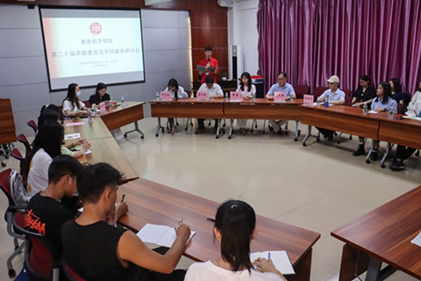 5月15日上午,教科院于第四教学楼408会议室举办第二十届班级建设及学风建设研讨会。该研讨会以“建和谐班风,创优良学风”为主题,旨在切实增强学生的学习热情,强化学院优良班风、学风建设。本次研讨会由教科院学生会学习部主办,出席会议的人员有教科院院长范兆雄、党委副书记陈理才、教育系系主任慕彦瑾老师、各辅导员老师、学生会主席团、18-20级各班班长和学习委员。
