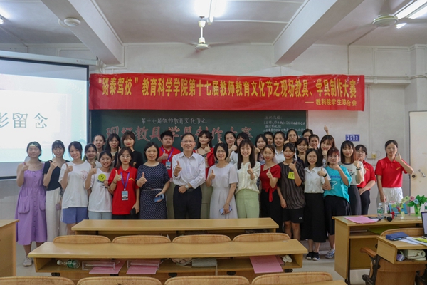 5月22日下午,教科院学生联合会及手工制作协会于第四教学楼611至613室举办了第十七届教师教育文化节之现场教具、学具制作大赛,岭南师范学院附属幼儿园园长李晓红、教科院教育系梁碧湘老师和特殊教育系杞昭安老师担任本次比赛评委,辅导员黄蔚老师、教科院学生会轮值主席颜宛和主要工作人员、少儿手工制作协会干部及全体参赛选手出席了本次活动。