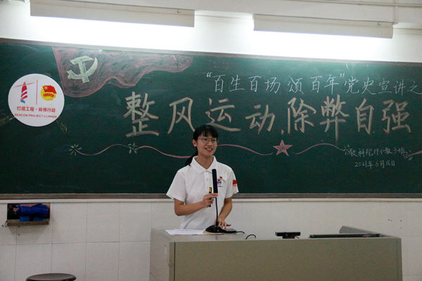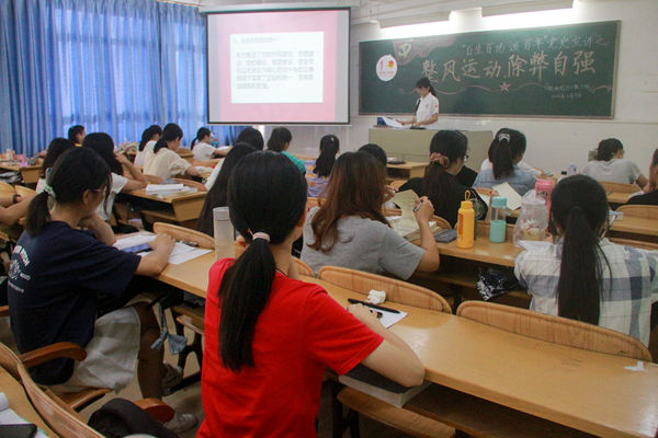 6月18日下午,教科院团委培根宣讲团于第四教学楼713室举行以“整风运动,除弊自强”为主题的培根宣讲会,本次宣讲会由唐汝主讲。19小教3班全体成员现场聆听宣讲。