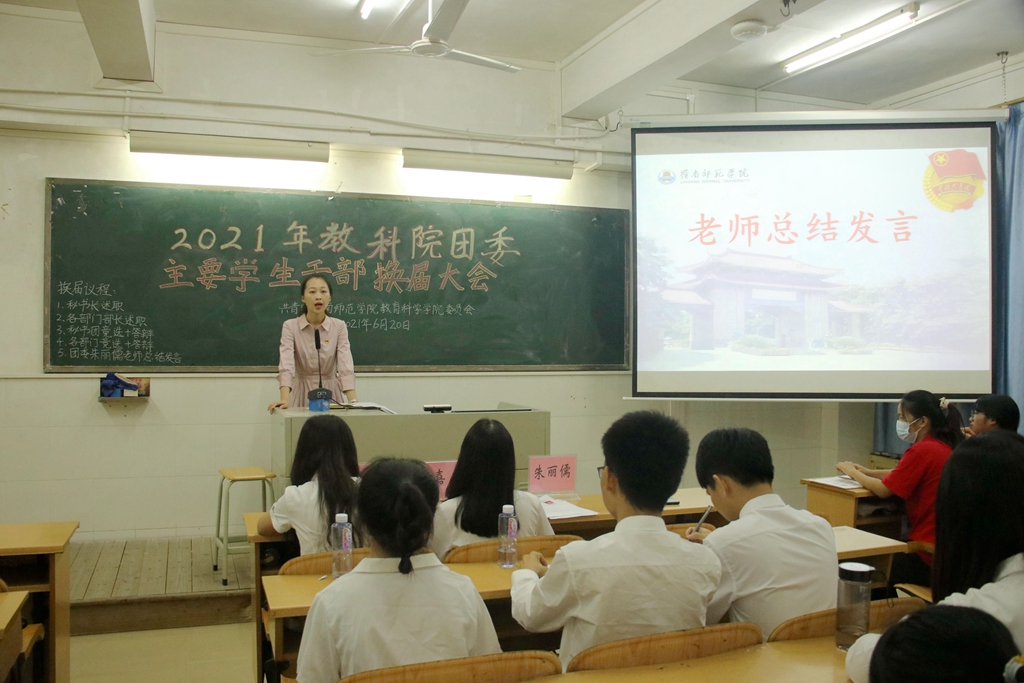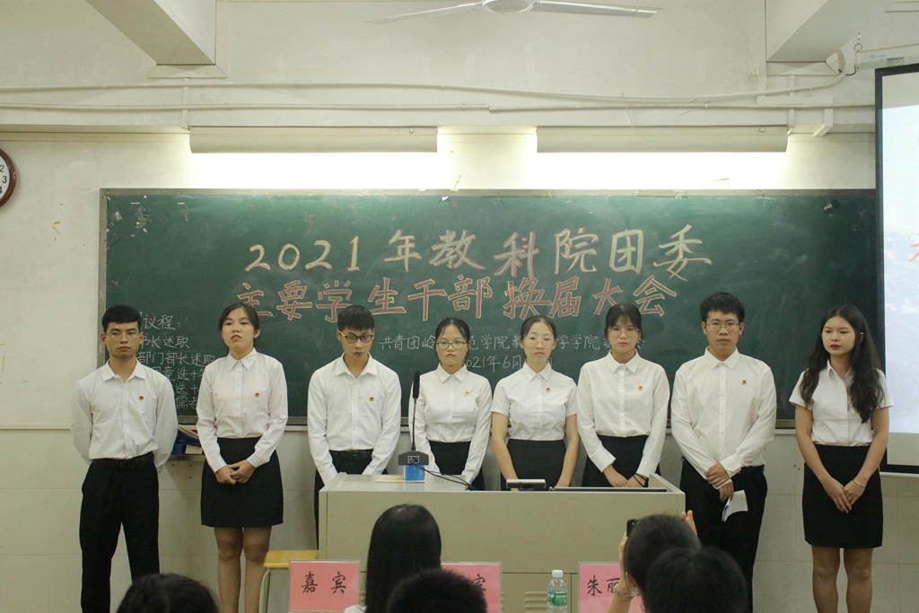 6月20日晚,教科院团委于教四501室举办教科院团委主要学生干部换届大会。大会采用线上和线下相结合的方式进行,教科院团委负责老师朱丽儒、教科院团委全体干部、18-20级全体团支书出席了本次换届大会。