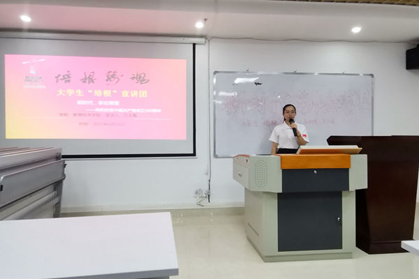 6月21日晚,教科院团委培根宣讲团于教四E栋303室开展以“新时代,新在哪里”为主题的培根宣讲会。本次宣讲会由18特教1班刘玉霞主持,18特教1班全体成员现场聆听宣讲。