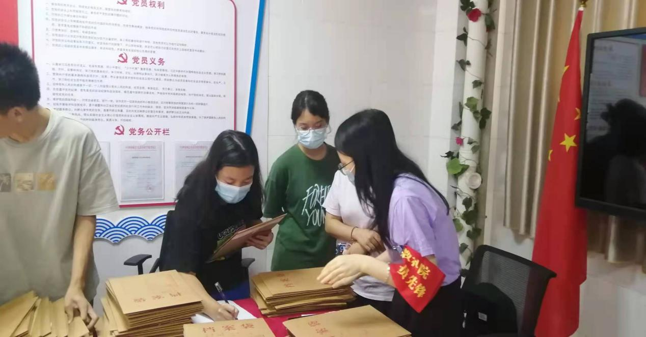 “贴心服务,践行初心”,党员志愿服务队把对毕业生的志愿服务作为党史学习教育的生动实践。党员志愿服务队以毕业季为契机,搭建志愿服务平台。服务队以小分组对接每一个毕业班形式开展服务。炎热的天气里,服务队帮助师兄师姐搬寄行李、上交下发毕业生党籍材料等等。在整个过程中,学生党员们精诚合作,紧密配合着老师和学生党建中心的工作人员工作。尽管工作量大,天气炎热,活动持续时间长,但他们脸上始终洋溢着热情的笑容,面对毕业生们的问题,认真解答。特此是在分发毕业生相关入党材料时,每一位党员志愿者都保持着高度集中的注意力,认真分好和下发党籍材料给每一位毕业生,努力做到不失误、不遗漏,努力为17级毕业生的顺利毕业离校保驾护航,也为这个六月毕业季增添上更多的色彩。