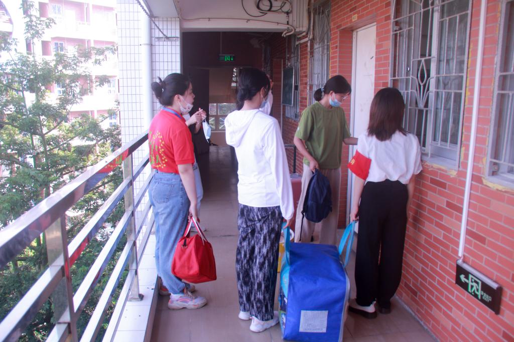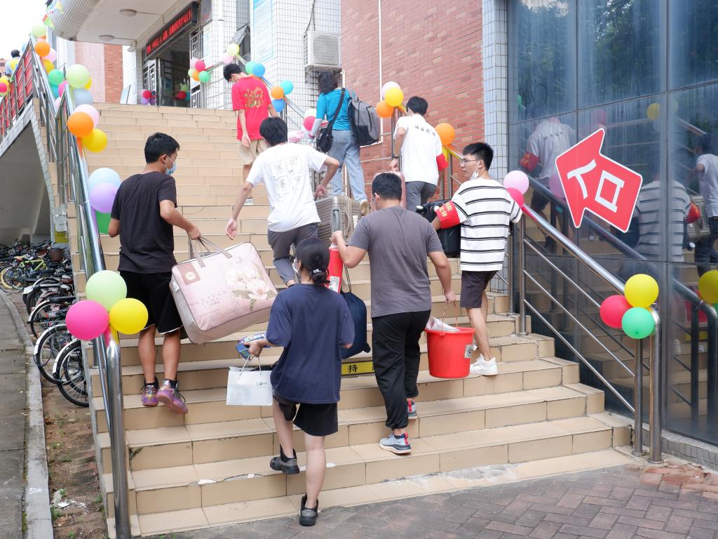 志愿者帮助新生入住(黄丝敏摄)
