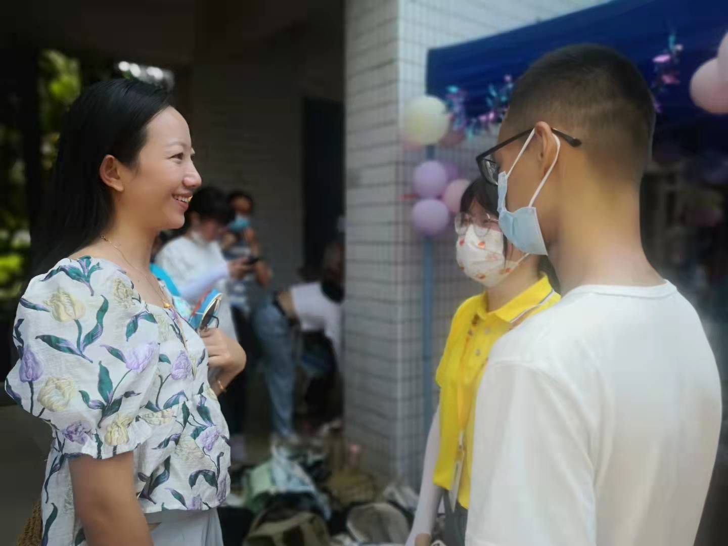 新生班主任与新生热情交谈