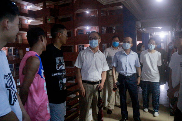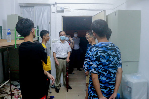 教科院院长范兆雄走访新生宿舍(崔彩虹摄)