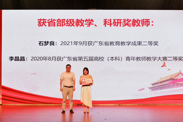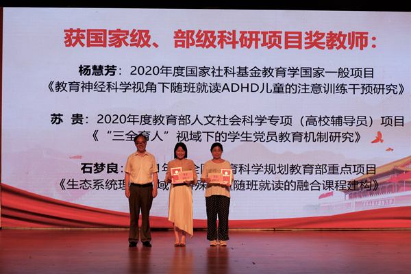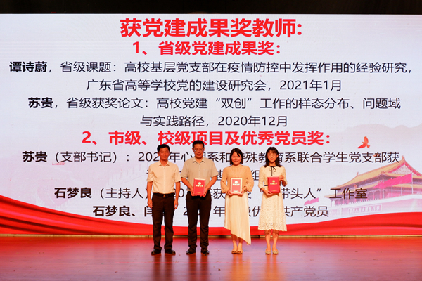 梁晋书记宣读了教科院关于表彰突出业绩奖和党建成果奖的表彰决定,与会领导为获奖师生代表颁奖。