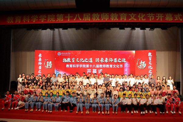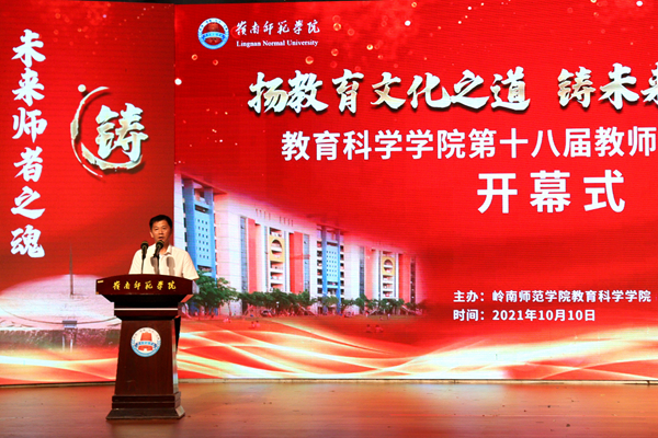 礼赞建党百年,矢志为党育人。在建党一百周年之际,为全面提高师范生培养质量、加强师德师风建设、推动教师教育文化创新发展、丰富学生第二课堂活动,10月10日晚,教科院以“扬教育文化之道,铸未来师者之魂”为主题,在学校音乐厅启动第十八届教师教育文化节。教科院党委书记梁晋、院长范兆雄、正处级组织员郑赞芳、党委副书记陈理才、副院长陈金圣、副院长李继波出席开幕式。