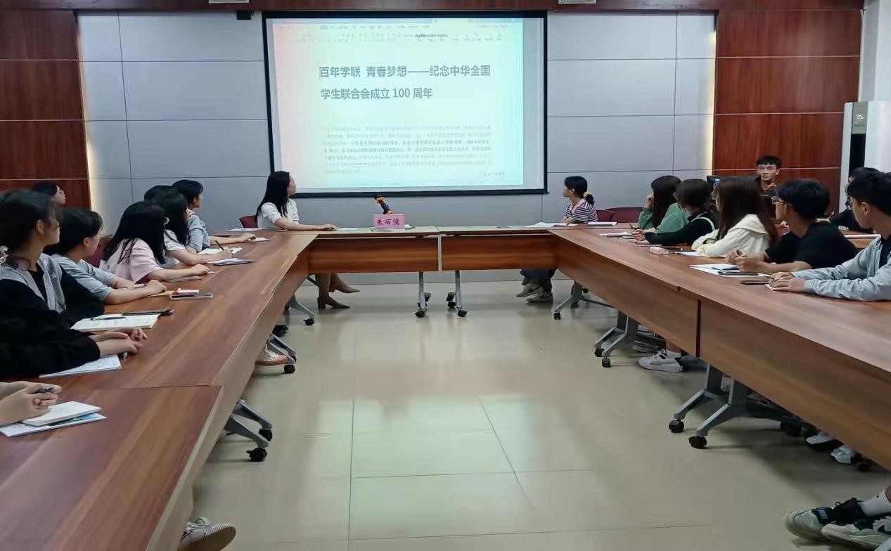 习近平总书记在纪念五四运动100周年大会上深刻指出:“新时代中国青年运动的主题,新时代中国青年运动的方向,新时代中国青年的使命,就是坚持中国共产党的领导,同人民一道,为实现‘两个一百年’奋斗目标、实现中华民族伟大复兴的中国梦而奋斗。”在第一部分的学习中,主席团成员李晓鹏同学带领全体成员回顾一百年前的中国青年的力量,学习了习近平总书记关于青年的期冀的讲话。学联学生会组织事业是中国青年运动的重要组成部分,必须以习近平总书记重要讲话精神为指引,勇于担当、主动作为,奋力开创新时代学联学生会组织工作新局面。